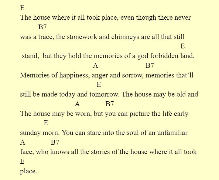 I think the inspiration for this must have just been from looking at ruins of traditional scottish croft houses, much like the one pictured. Chords and Words